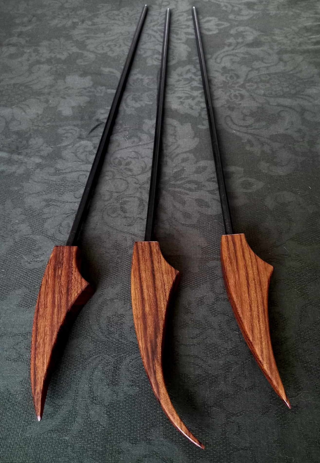 Manche en amazakoué, finition huile naturel éco certifier, tige en hêtre noirci, finition cire végétale de carnauba.